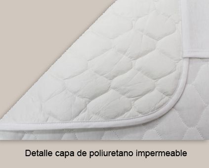 El tejido fino acolchado es de poliéster ayuda a absorber los líquidos. La capa fina de poliuretano ejerce de barrera protectora para evitar se manchen las bajeras ajustable y las sábanas.